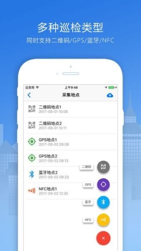2.多类型巡检卡类型支持,二维码/蓝牙/gps/nfc,满足各种巡检场景。