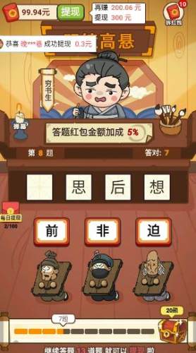 超级成语大富豪,填字闯关赚红包的小游戏,支持成语填字功能,主要考验玩家的成语知识,挑战成语填字填对一个都有红包拿,满0.3元就能提现了,支持反复提取。