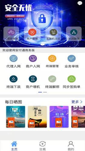 安付通商务版是一款专业商务管理服务平台,专为各大连锁店、批发市场设计的管理软件,使用方法简单,可以进行多方面数据管理,包含了商户、代理商、终端、分润等方面信息管理,保障安全支付,效率无忧,实时记录交易明细,随时可以查看。