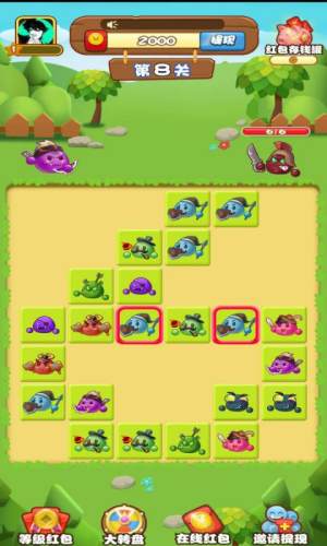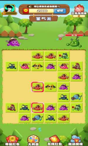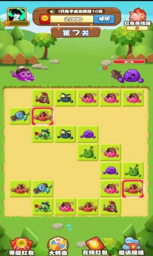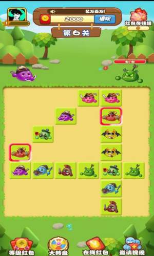 新颖的连连看休闲娱乐小游戏,玩家通过连对屏幕中相同且无阻碍的图案,使得英雄团子射出利箭,最终打开福袋并通关。过关时,能领到红包。领红包前,可能需要看个广告。