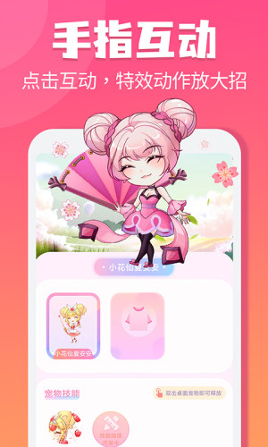 多款可爱动漫角色可以免费领养,你的宠物会在手机桌面上左右走动,会卖萌,会生气,它无聊的时候还会手机屏幕的两侧攀爬。