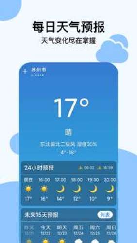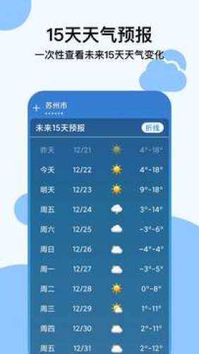穿衣天气预报app,带穿衣指南的天气预报app,提供未来15天天气,获取更详细的天气数据,更多天气信息尽在其中,提供每天穿衣指导,时刻关注天气变化。