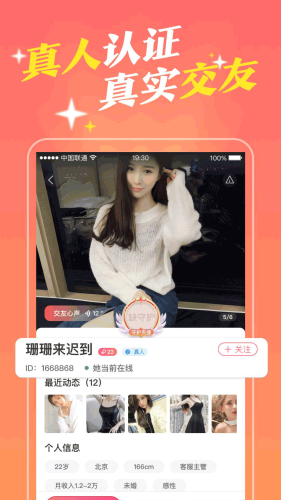坚持对用户资料真实度做认证的交友软件,拒绝照骗!
