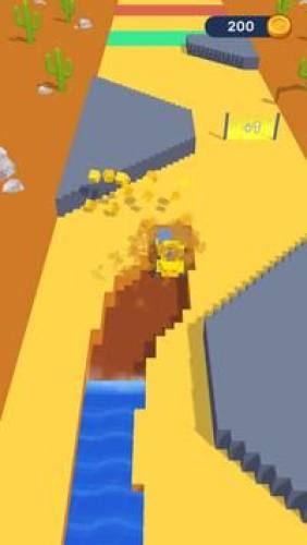 1、左右滑动屏幕控制挖掘机方向,通过正确的加料门;