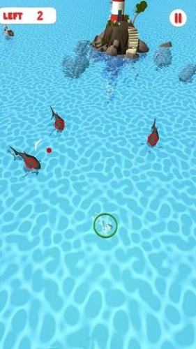 2、你必须要小心一旦被鲨鱼咬到游戏结束。