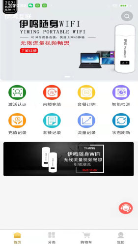 伊鸣互联app是一款由郑州易泰迅达网络科技有限公司开发的移动网络辅助软件,用户可以通过本软件购买移动网络设备,还能通过本软件一键连接购买的设备激活进行设置使用,还能线上充值,使用方便。