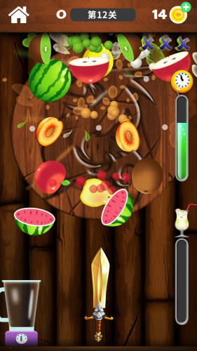 4、游戏玩法简单,玩家只需要在屏幕上滑动手机,切掉屏幕内的水果即可。