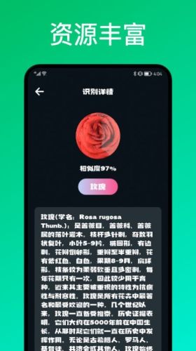 【图库识别】:导入手机相册里的图片,即可快速识别植物。