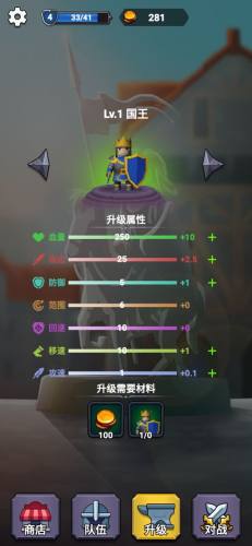 战斗胜利:游戏胜利后会获得金币,以及弓箭手,剑手等职业的碎片,这些碎片可以用于升级对应兵种的属性。