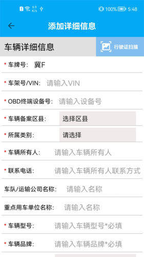 保定市地区针对重型柴油车管控,给车辆加装OBD装置时,提交车辆相关信息进行备案,方便设备安装后匹配车辆数据。
