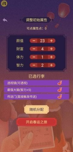 春运模拟,一款模拟春运的趣味游戏,在其中玩家可以体验到很多乐趣玩法,收拾好你的行李来开启其中的挑战,在其中简单的文字模拟体验,许多的玩家可以简简单单进行这款游戏。