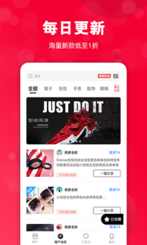 共享货源助手app是一款专业的货源直销平台,使用方法简单,在共享货源助手app里可以轻松找货,汇集了海量优质的好货,包含了鞋子、包包、手表、配饰、眼镜等商品,每日更新优质好货,海量新款低至1折,质量有保障。