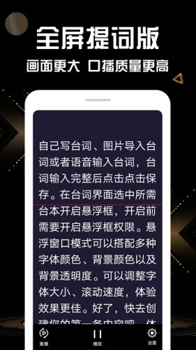 【提词设置】支持背景透明度,字体、播放速度、颜色等多方位自定义设置,