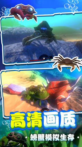 螃蟹生存模拟手游,一款趣味大鱼吃小鱼游戏。这里玩家开局一个小虾米,在大海之中吞噬其他的鱼类一步步进化成为巨型螃蟹,更多的食物等你吞噬,随机进化成为海底霸主。