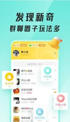 1、兴趣群、亲友群、同学群 群聊圈子玩法多