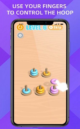 3、玩家需要将不同颜色和大小的铁圈分类放置在不同的堆栈上。