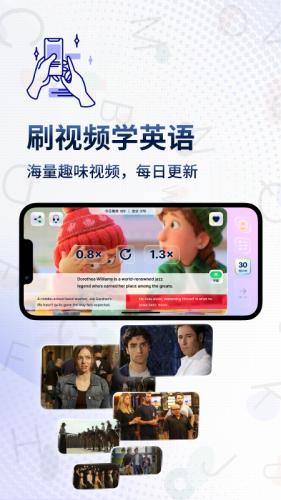 通过提取大量美剧电影TED等地道素材的对话,配合视频的趣味场景,