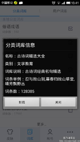 1、将bin格式文件放到/sdcard/iFlyIME/dicts/里面