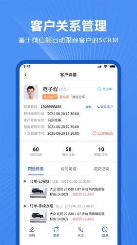 4.提供员工管理、车辆管理、客户CRM、私域流量销售平台及微营销工具