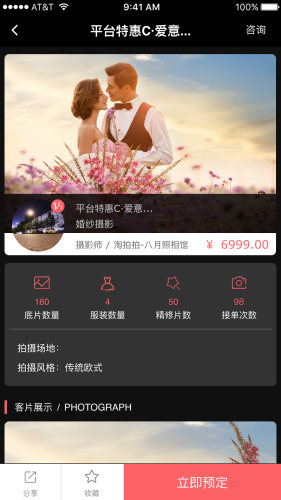 4、预约摄影师档期,支付200元订金
