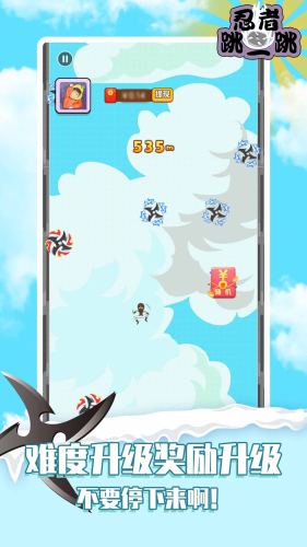 勇敢的忍者不停向上探索,在参差不齐的小横板上不断向上跳跃。