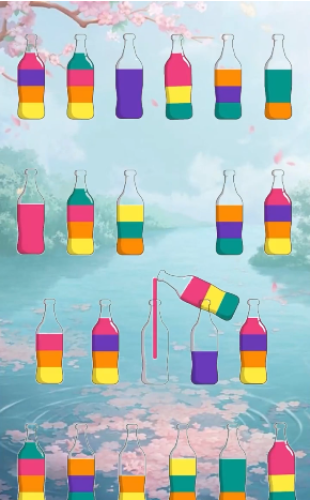 一款好玩的脑力闯关小游戏。这款水排序拼图游戏让你充分活跃你的大脑,关卡难度随着游戏进程逐渐升级,试着将相同颜色的水倒在一起,这个过程的顺序很重要。游戏还给玩家提供了很多道具可以使用。