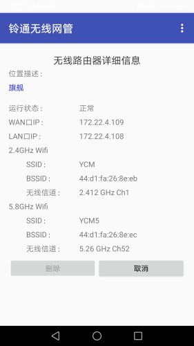 铃通无线网管APP通过WIFI,无线接入到WLAN的各个无线路由器中,可以对WLAN的网络参数,防钓鱼,防蹭网等无线安全功能,进行配置查询,对管理员账户,固件版本等进行管理。