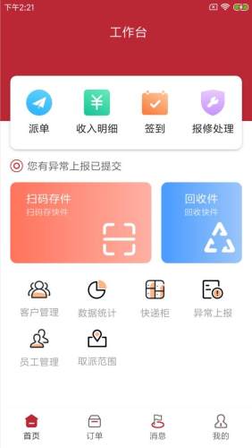 尚兴尔驿派是一款能够实现城市快递包裹快速分发的APP,其中功能包括“快递订单管理”,“快递柜管理”,“客户管理”,“员工管理”等功能,可以大幅度提高快递分发效率,降低劳动成本、节约工作时间。