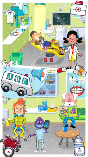 3、玩家可以扮演不同部门的医生。孩子蛀牙了该怎么办?帮他们清理蛀牙,让他们注意不要吃糖果。