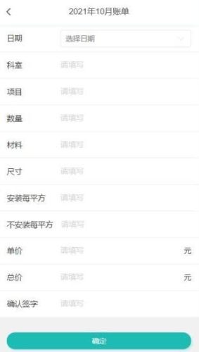 记录欠款日期,可自定义字段 包括 项目、材料、科室、尺寸、面积等等, 账单管理可设置已结清, 可搜索欠款人,欠款日期,可导出xlsx 账单。