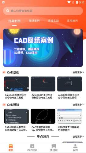 我们的应用程序支持房屋设计、建筑行业、机械制造等各个看图的视频教程内容;同时分为新手教程,专注小白学习;成长进阶,帮助大家不断晋升自己的技能;老手大牛,主要让有经验的你水平再次得到提高