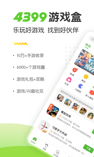 2025年4399游戏盒官方正版68.9M2404694人在玩4399游戏盒正版是由4399官方出品的一款安卓手机游戏盒子应用,安卓手机用户可以使用4399游戏盒一键下载安装海量精品游戏,可以在游戏社区和玩家一起交流,边聊边玩。