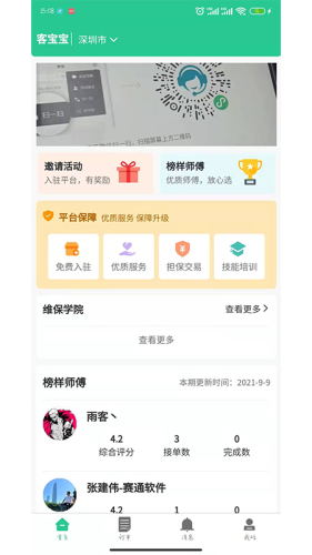 客宝宝师傅版App,维修师傅专业在线接单派单服务平台,服务类别覆盖农机设备、机械手、机器人、家电、口罩机、冲床、包装机、空压机、熔喷机、发电机以及油压机等。