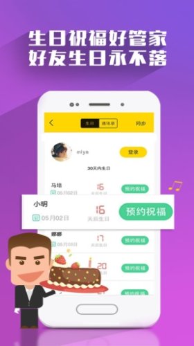 3、一键记录好友生日,朋友生日及时提醒,您的必备生日管家;