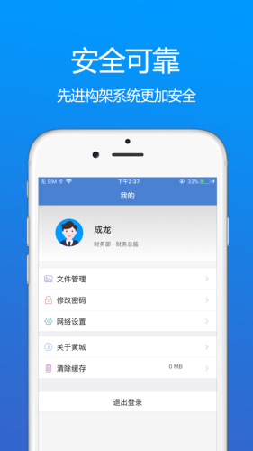 黄城办公APP是一款智能协同办公软件,致力于为企业打造互联无纸化办公平台,适用于政、企机构使用,统一部署、统一管理、功能强大、可靠易用,实现无地域限制的全球化网络办公。
