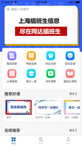 同达插班生这是一款主要针对插班生以及考研考博等等考试进行考前培训的手机应用APP。平台内汇聚了来自上海双一流的师资力量,确保教育质量的同时帮助大家更好进行学习,是一款非常优质靠谱的线上培训教育机构,不明白的知识点或是问题可以线上和老师直接交流,高效便捷!