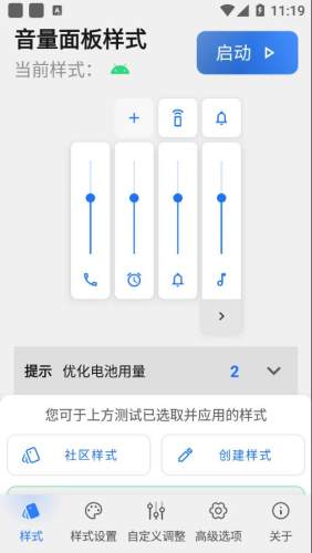 1、进入APP后,在【样式】列表中包含了各种音量面板样式,比如安卓经典、安卓12、ios等