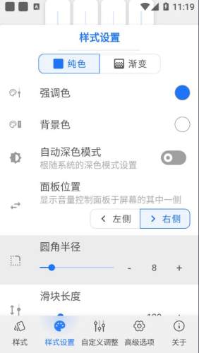 3、【样式设置】中可以设置纯色、渐变、背景色、面板位置、半径等不同的样式风格