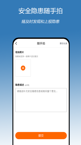 隐患上报,通过软件可随时拍摄隐患来进行上报,保证每个工人的施工环境。