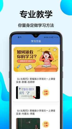 小学课程辅导APP通过生动有趣的的教学方式,让孩子们可以更加轻松的进行学习,来快速的提高孩子们的学习成绩和习惯,用户们可以在平台上学习到各种科目的课程和知识,用户可以自由的来选择自己需要的课程学习。、