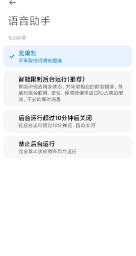 3、回到语音助手页面。点击设置“电池优化”,让语音助手不被系统自动关闭