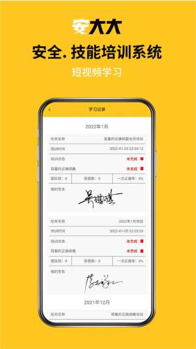 安大大app是一款由上海守安信息科技有限公司开发的安全教育管理软件,软件内拥有很多职业需要注意的安全问题资料,用户可以通过本软件提高学习安全意识,掌握自己行业需要注意的安全问题,线上培训。