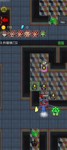 1、游戏目标:游戏中玩家需要躲避猛鬼,寻找合适的宿舍躲避,发展经济建设堡垒抵御鬼怪。