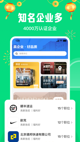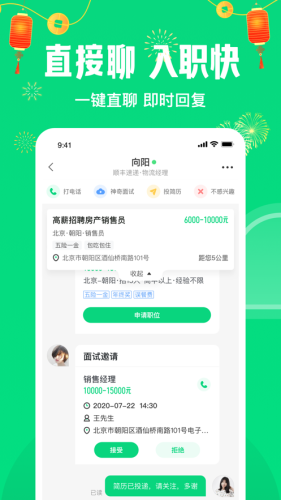 工资高、离家近、稳定、福利待遇好的工作应有尽有。百强名企入驻,轻松入职知名企业,让你在亲朋好友面前面子十足。随时随地,一对一直接沟通老板,当场敲定工资。