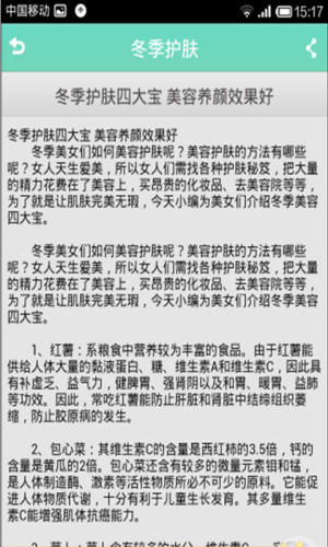 护肤大全是一个包含很多护肤知识,教你如何护肤的手机app。如果你也没有什么护肤方面的常识,如果你想拥有明星般闪亮光滑的肌肤,那么这个软件就很适合你。护肤大全中没有什么花桥的东西,都是一些非常实用的护肤知识以及护肤的技巧,告诉你如何护肤以及怎么样实用一些护肤品对皮肤好等等。