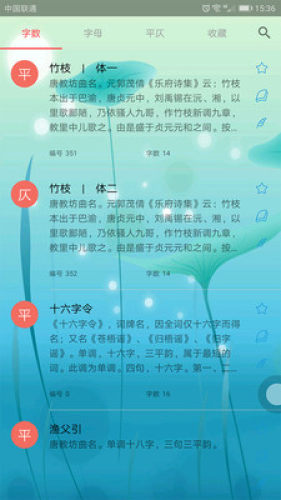 词心诗境是能够自动检查平仄及韵脚、辅助填词作诗APP。选择相应的词牌及诗格后,就可以开始婉约的填词豪放的作诗了。创作过程中,工具会用不同颜色区分平仄是否正确,韵脚是否正确。尤其应用UI设计中加入古典意象及风格,让您沉浸在古典诗词的创作中。