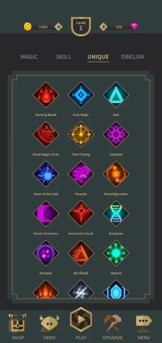 3、探索无限的地图,发现自己强大的神器,并收集法力以获取新的能力