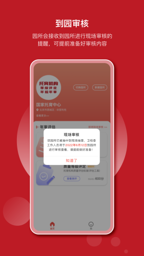 【核心功能】加强托育机构专业化、规范化建设,协助机构线上完成卫健委等级评定、年审等监督管理,降低沟通与管理成本。