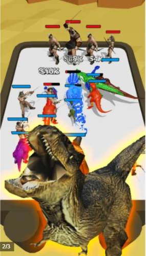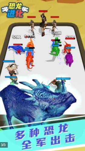恐龙进化手游,这是一款恐龙进化对战的小游戏,融合合成元素,拖拽合成相同的恐龙或者猎人来升级,和对手开战,合理分配经济升级你的恐龙提升战力,轻松解决所有的对手。