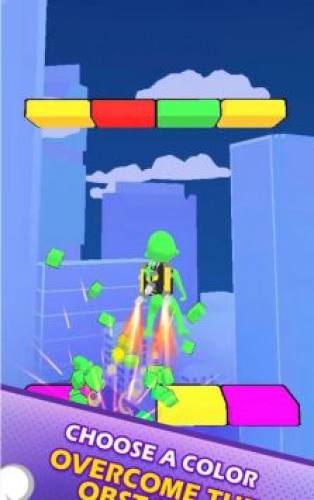 3、在飞行的途中还会遇到改变身体颜色的透明屏障,时刻注意颜色变换,不要让小人掉下去。